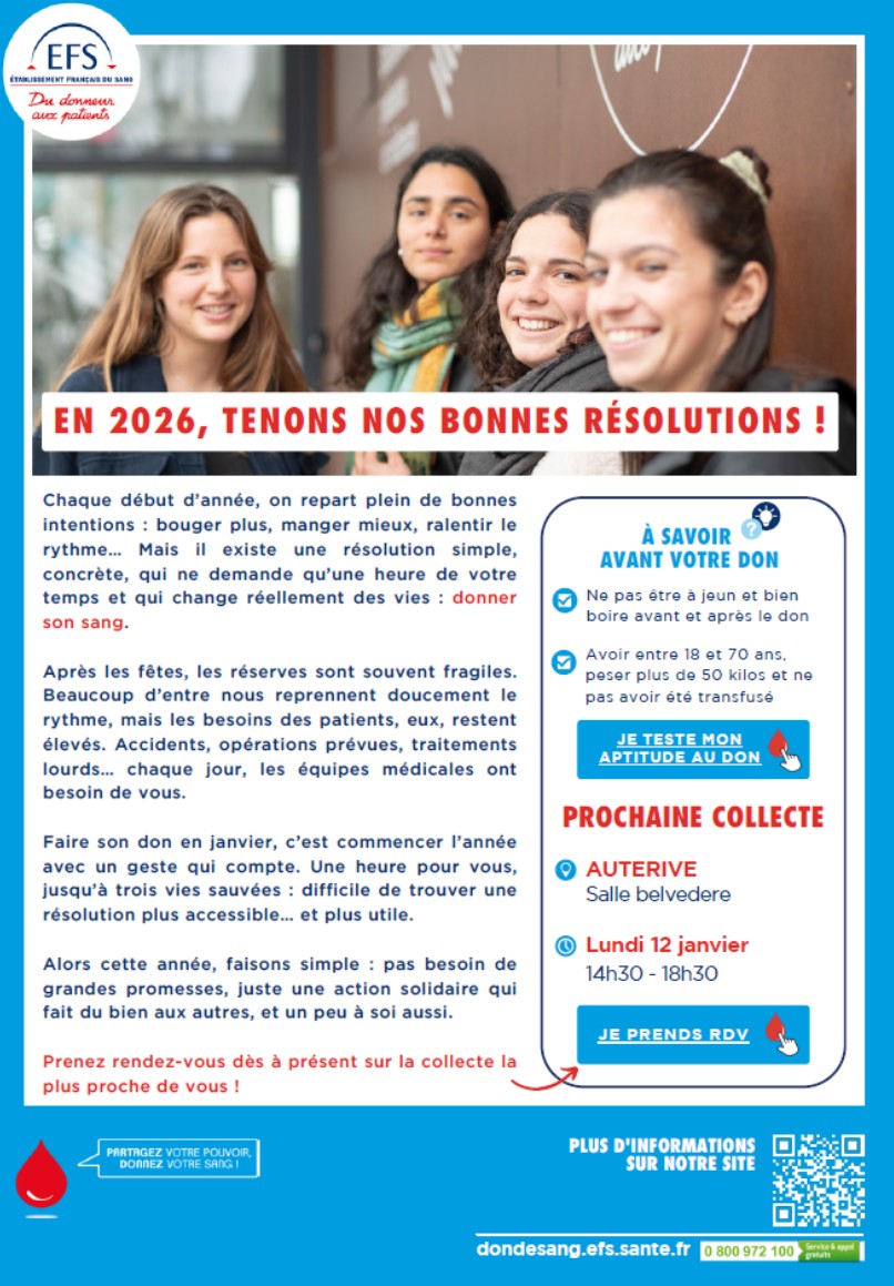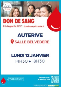 La prochaine collecte de sang à Auterive arrive très vite ! Le 12 janvier salle du Belvédère