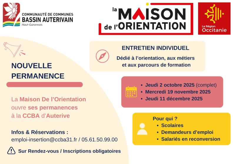La Maison de l’Orientation ouvre ses permanences à la CCBA d’Auterive 🎉