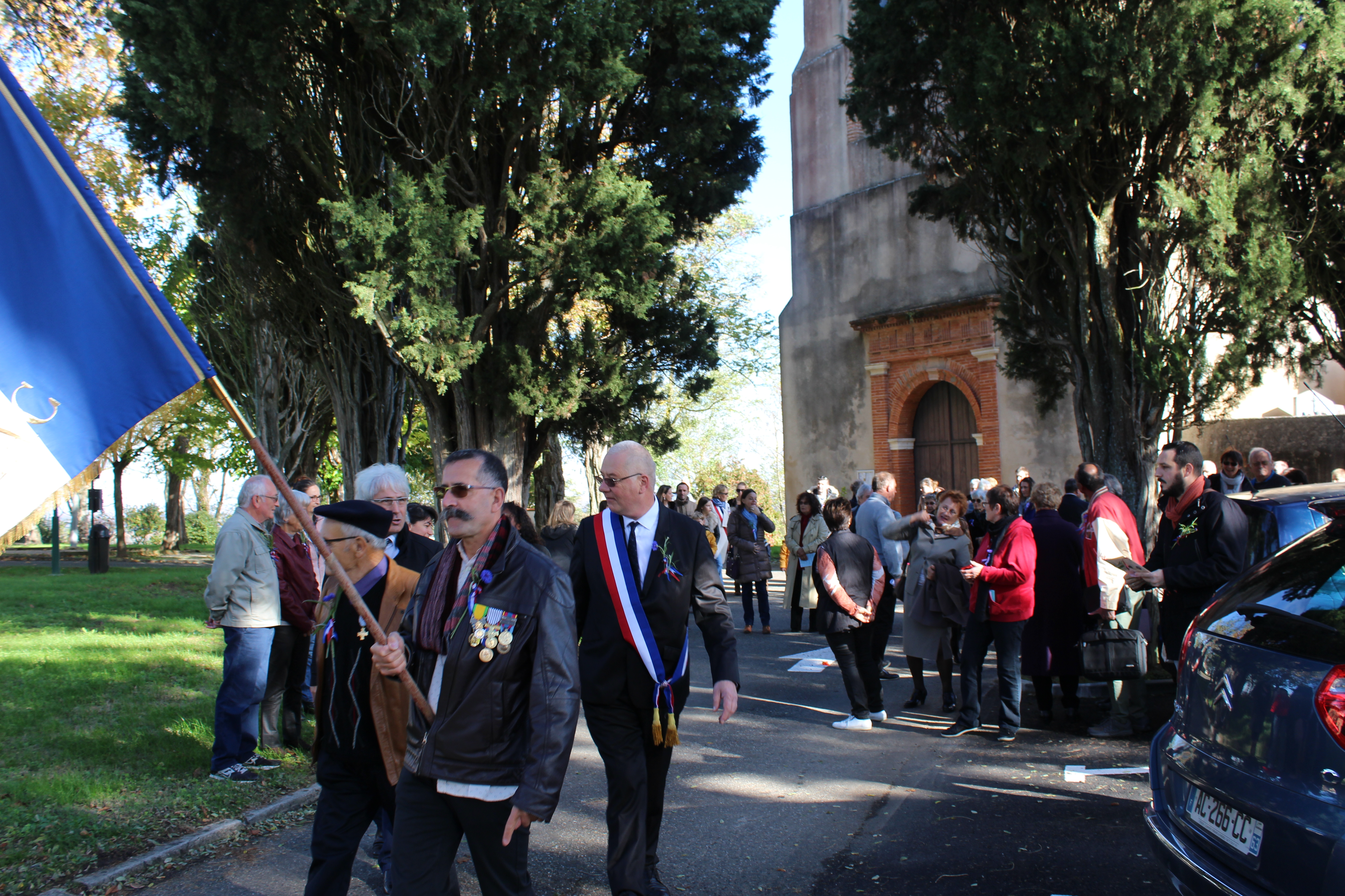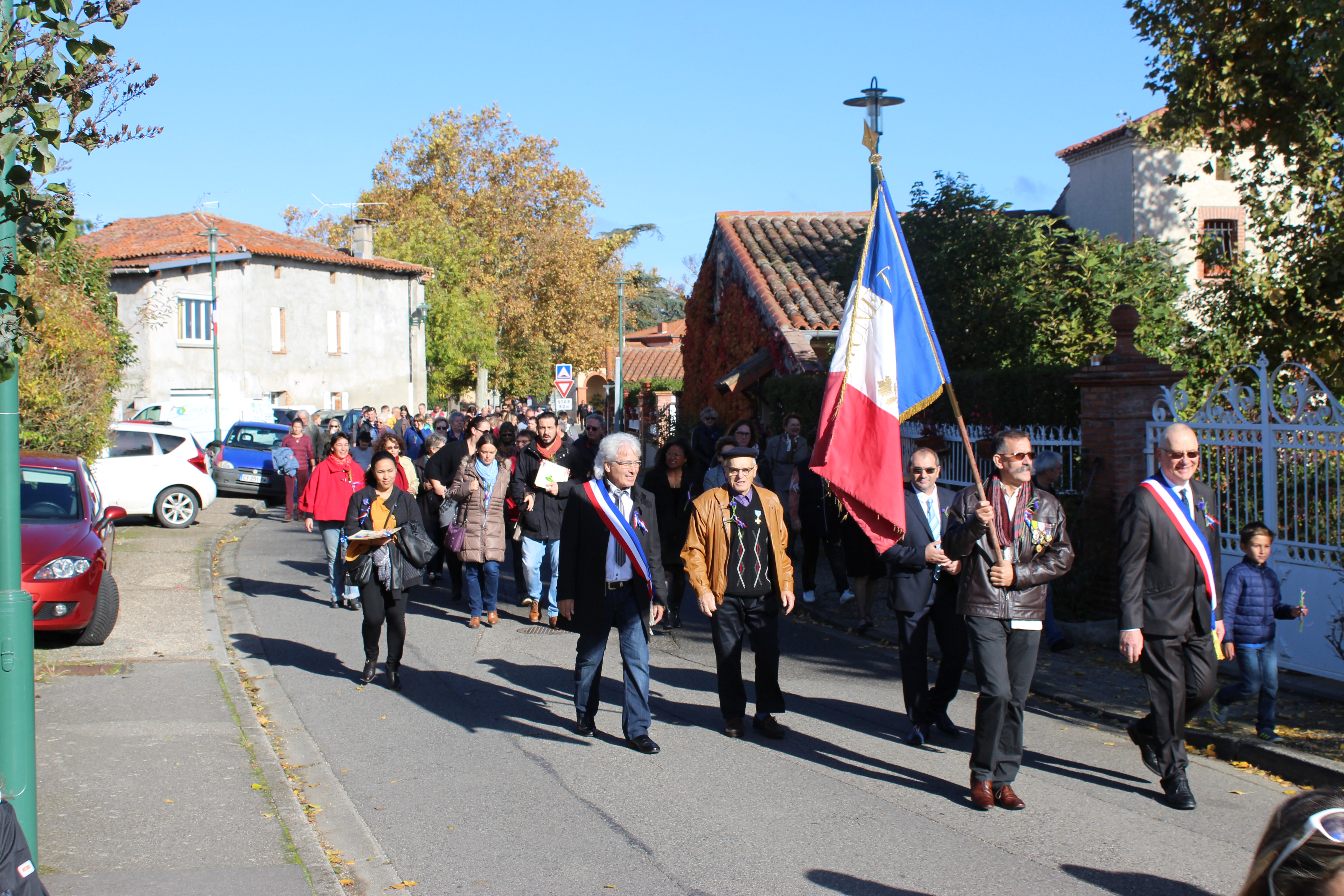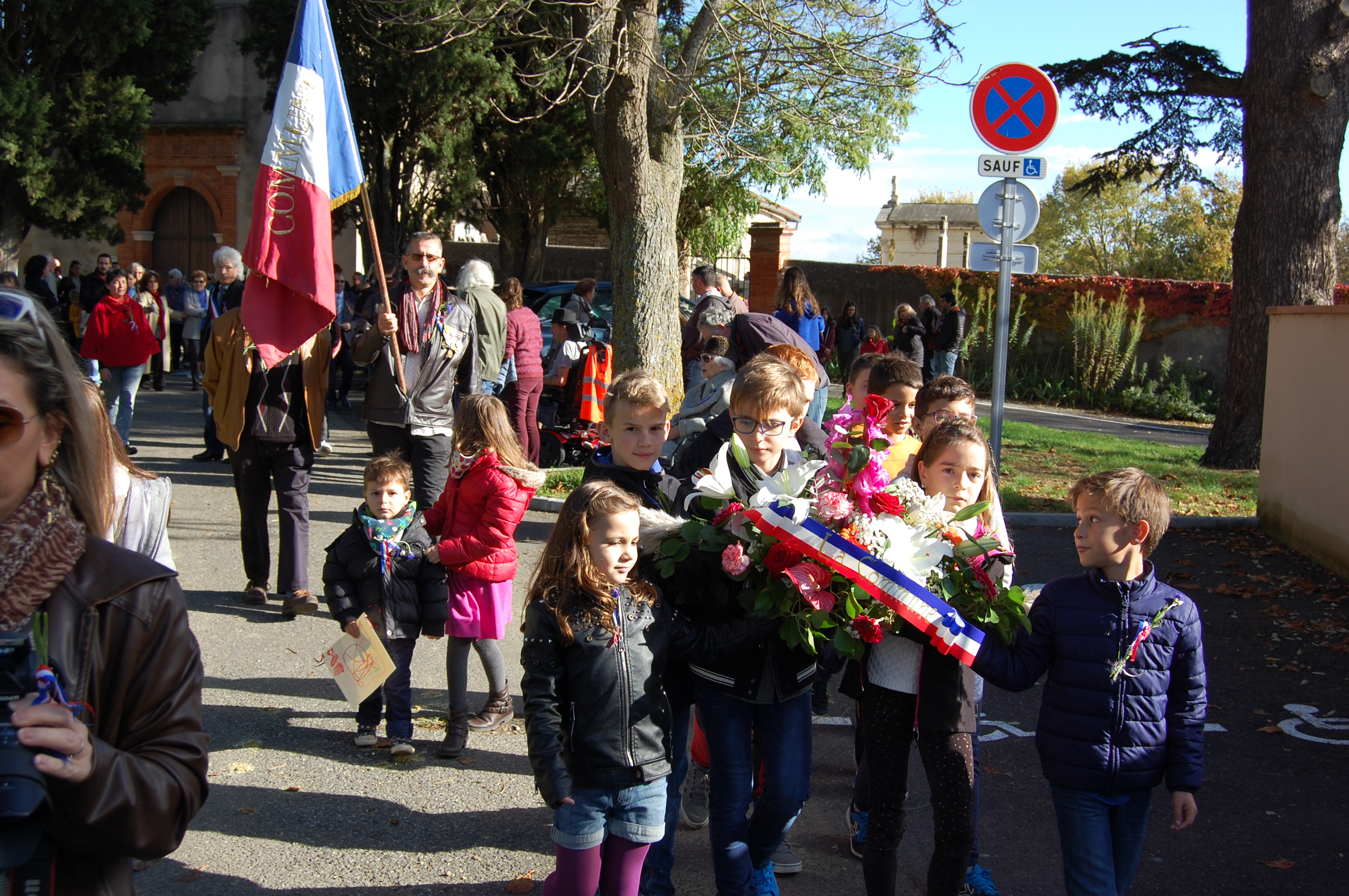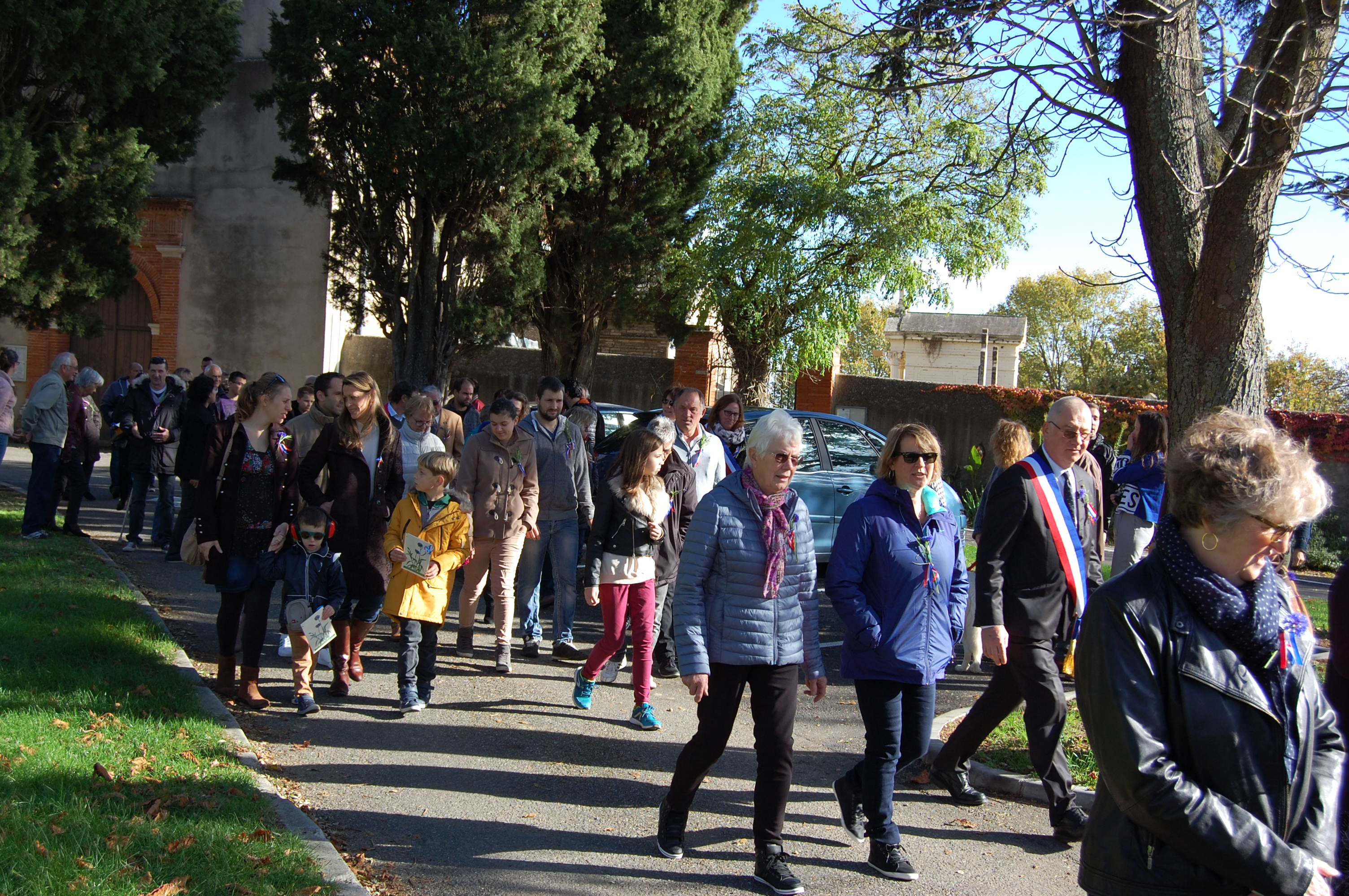 En ce jour de commémoration du centenaire de l'armistice du 11 Novembre 1918, Les Grazacoises et Grazacois sont nombreux à être présent pour honorer " nos poilus ". La participation massive des enfants à cette commémoration, assurera la continuité de la mémoire. Les Grazacoises et Grazacois avaient rendez-vous devant l'église, et c'est en procession au son des cloches qui sonnaient à la volée, que le cortège s'élançait derrière les enfants qui portaient la gerbe, direction le monument aux commémorations.