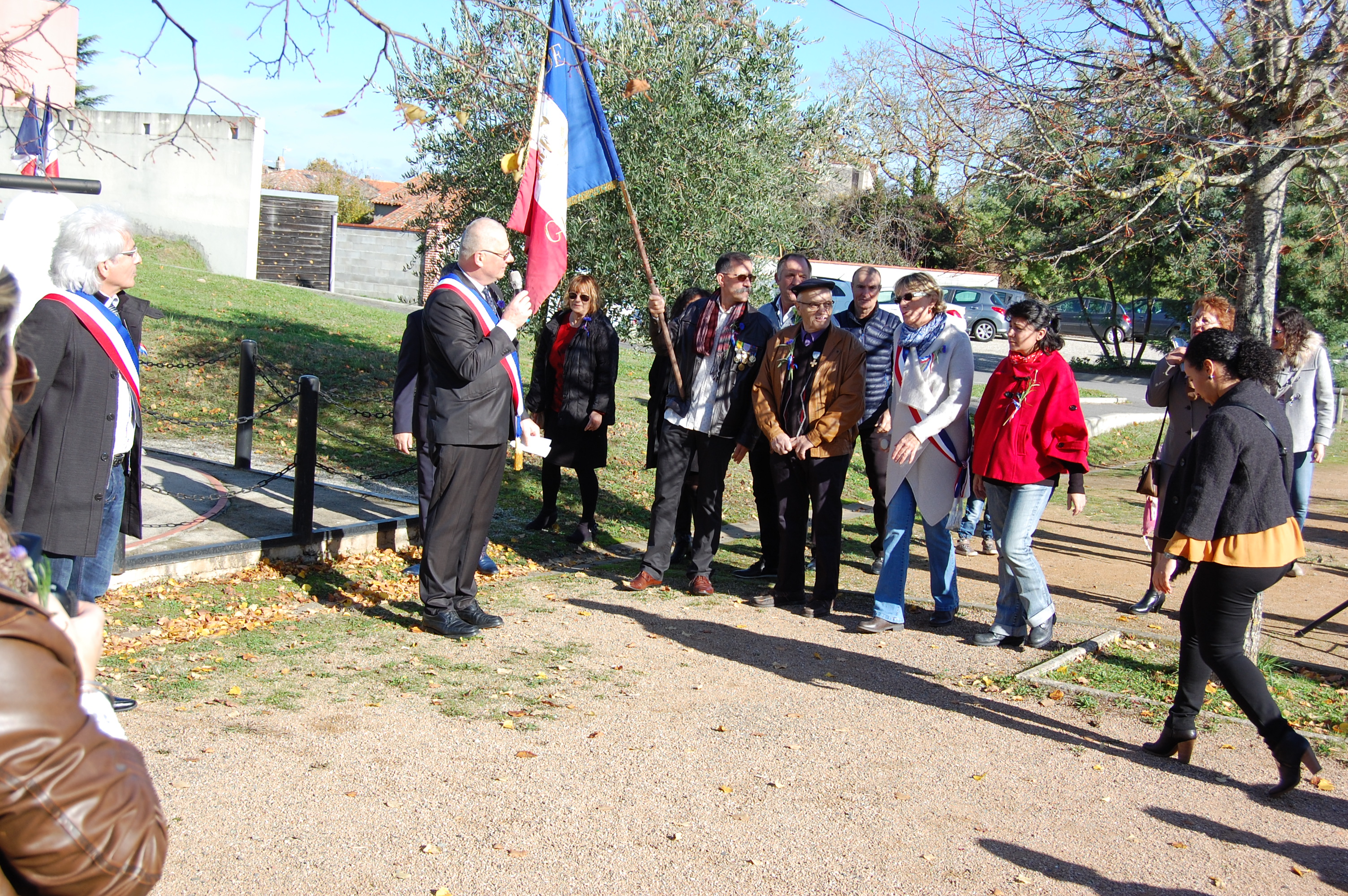 Après avoir lu le discours officiel,M. Le Maire donne la parole à M. Collado représentant de l'association des anciens combattants afin qu'il cite les enfants de Grazac mort pour la France, et inscrits sur la plaque de commémoration.