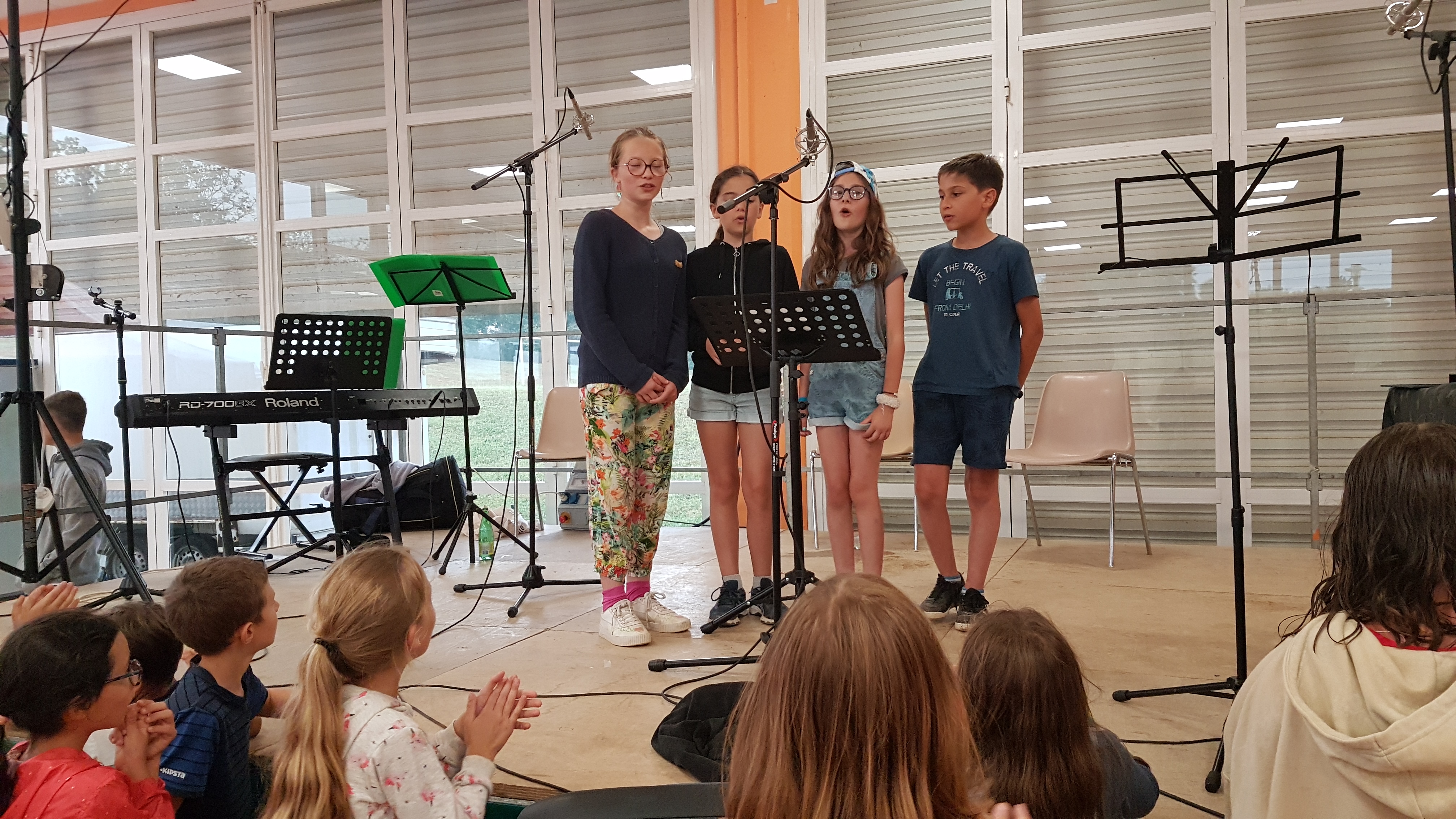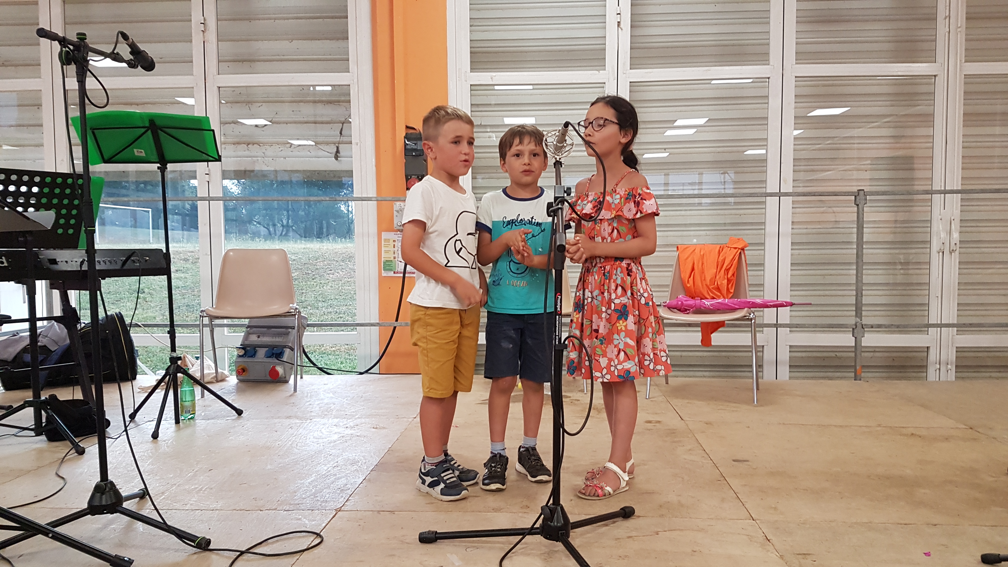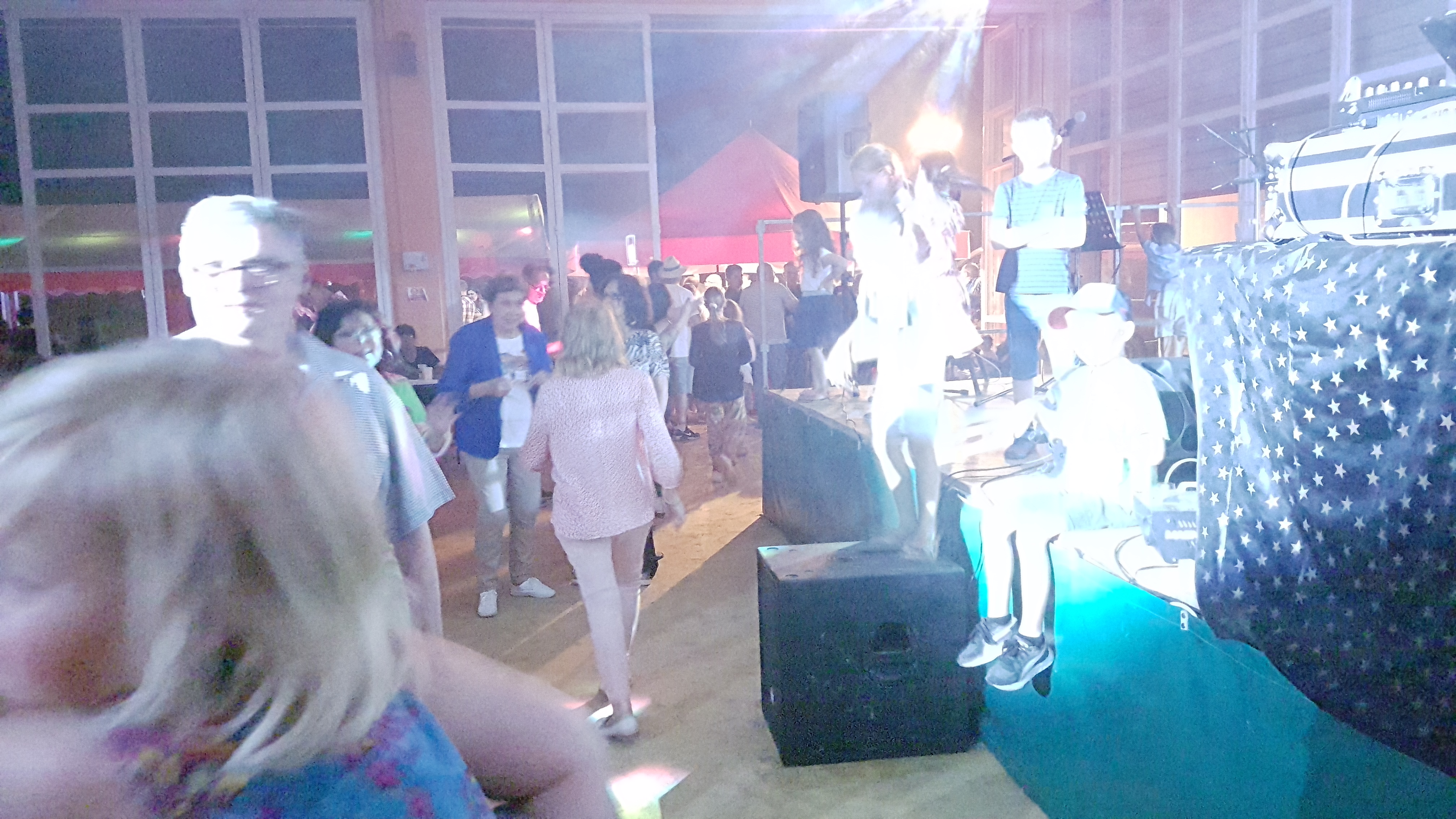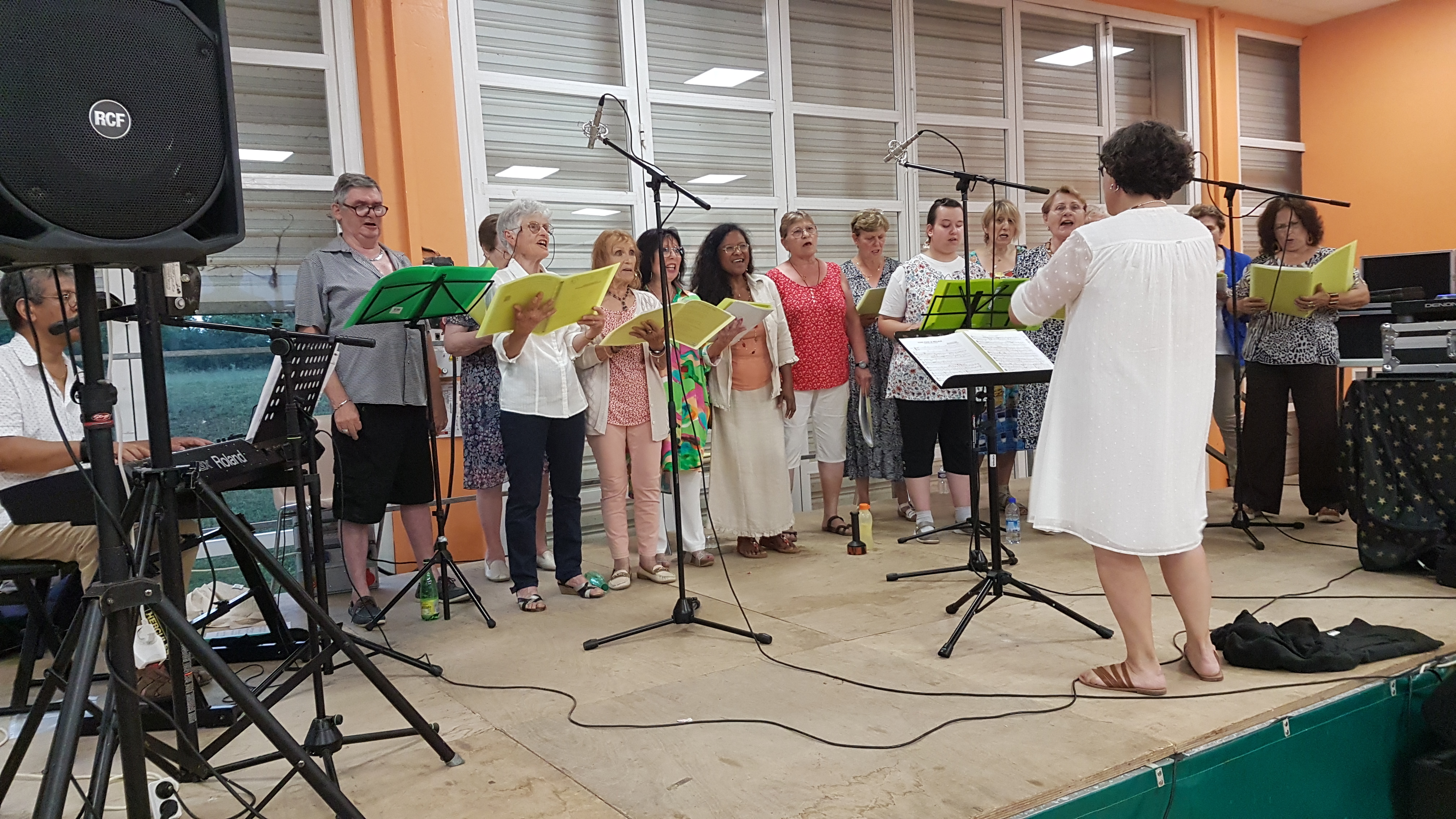 Pendant ce repas, plusieurs enfants, spontanément, ont pris possession de la scène pour nous chanter quelques airs actuels, mais à leur manière, quelle fraicheur. On n’a pas retenu tous les prénoms, mais ils se reconnaitrons sur les photos. Et pour faire la place pour le dessert, Jean-Luc proposait une demi-heure de danse festive, quel enthousiasme !