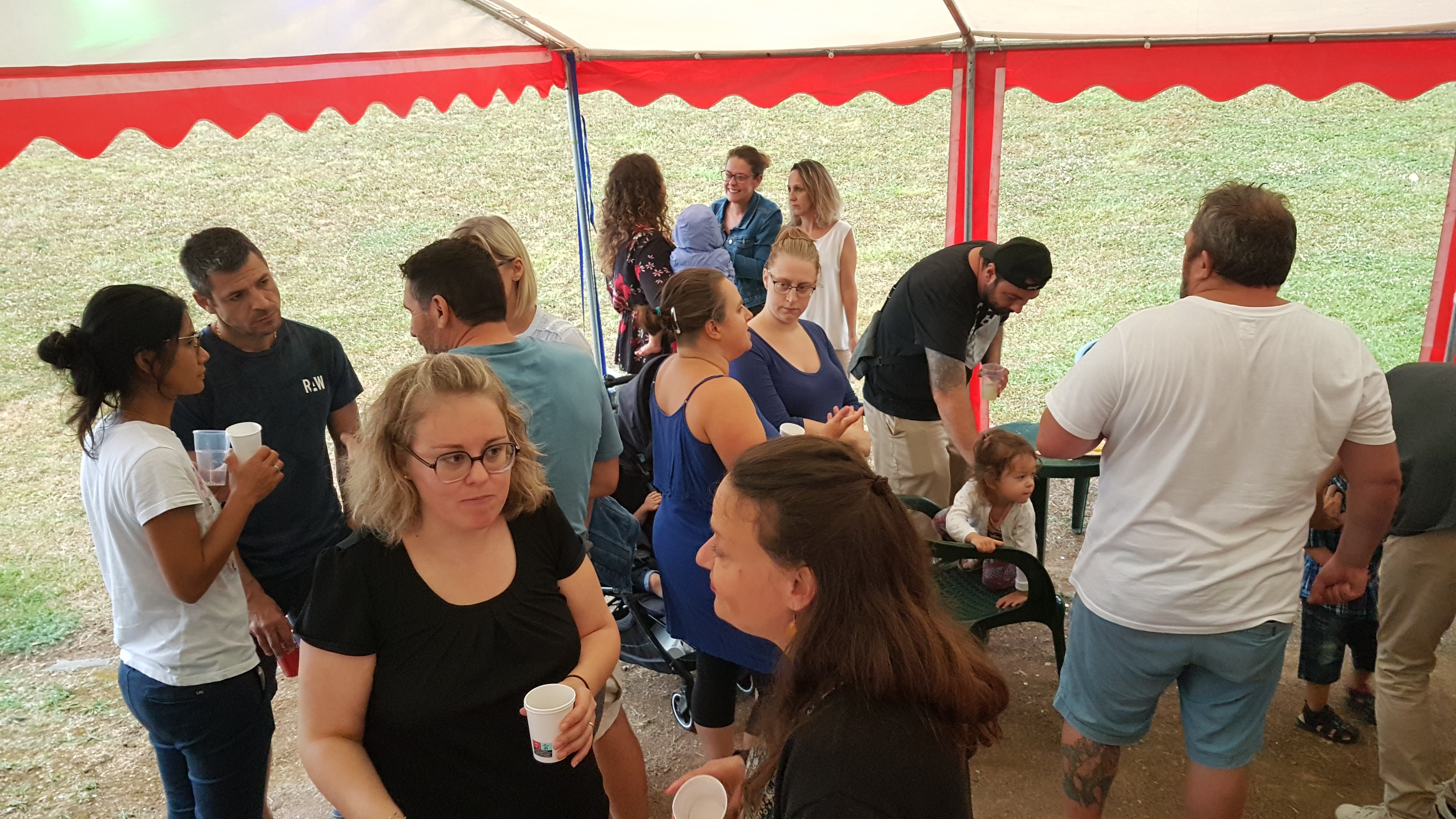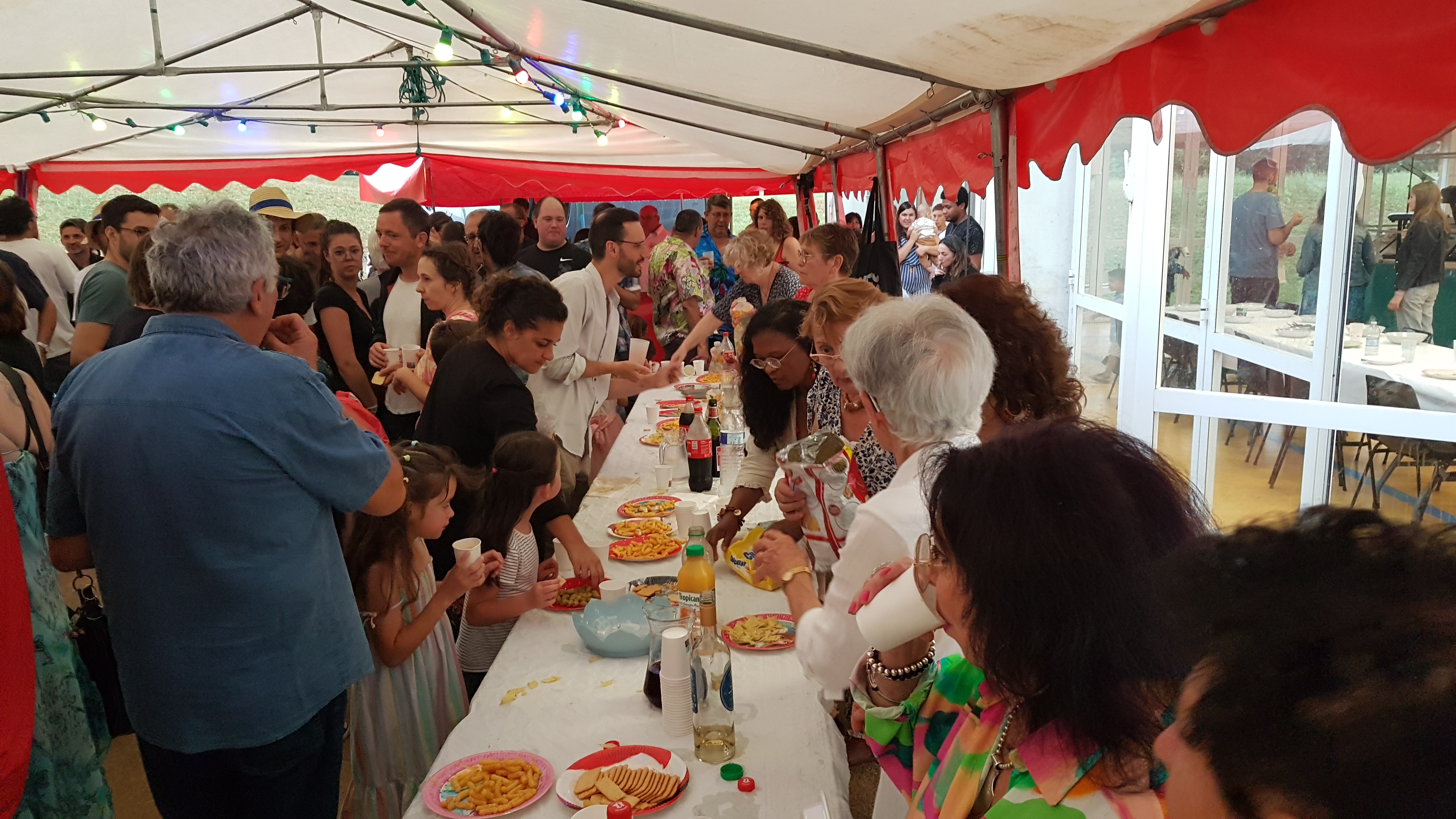 Enfin, après deux ans de privation, nous avons pu nous retrouver pour faire la fête de la musique. Quelle joie de revoir ces sourires et cet enthousiasme. Bien que la pluie ait perturbé l’apéritif, une animation était prévue dehors, cela n’a pas enrayé cette bonne humeur de circonstance. Nous avions prévu un barnum sous lequel, à l’abri, chacun pouvait boire un verre offert par les associations, Graz’Anim, A.V.E., Falkany, A.C.G., et Jean Michel.
