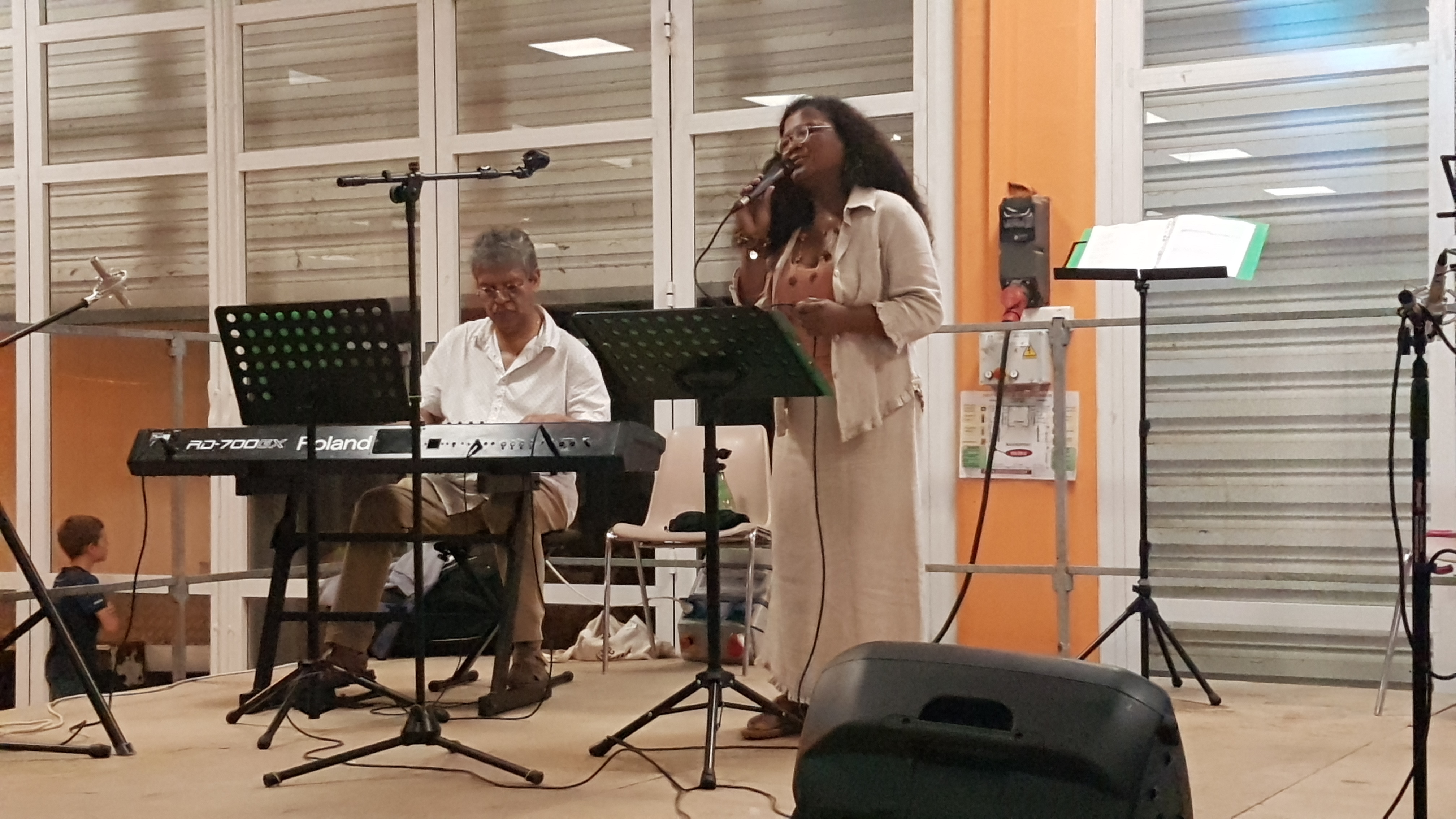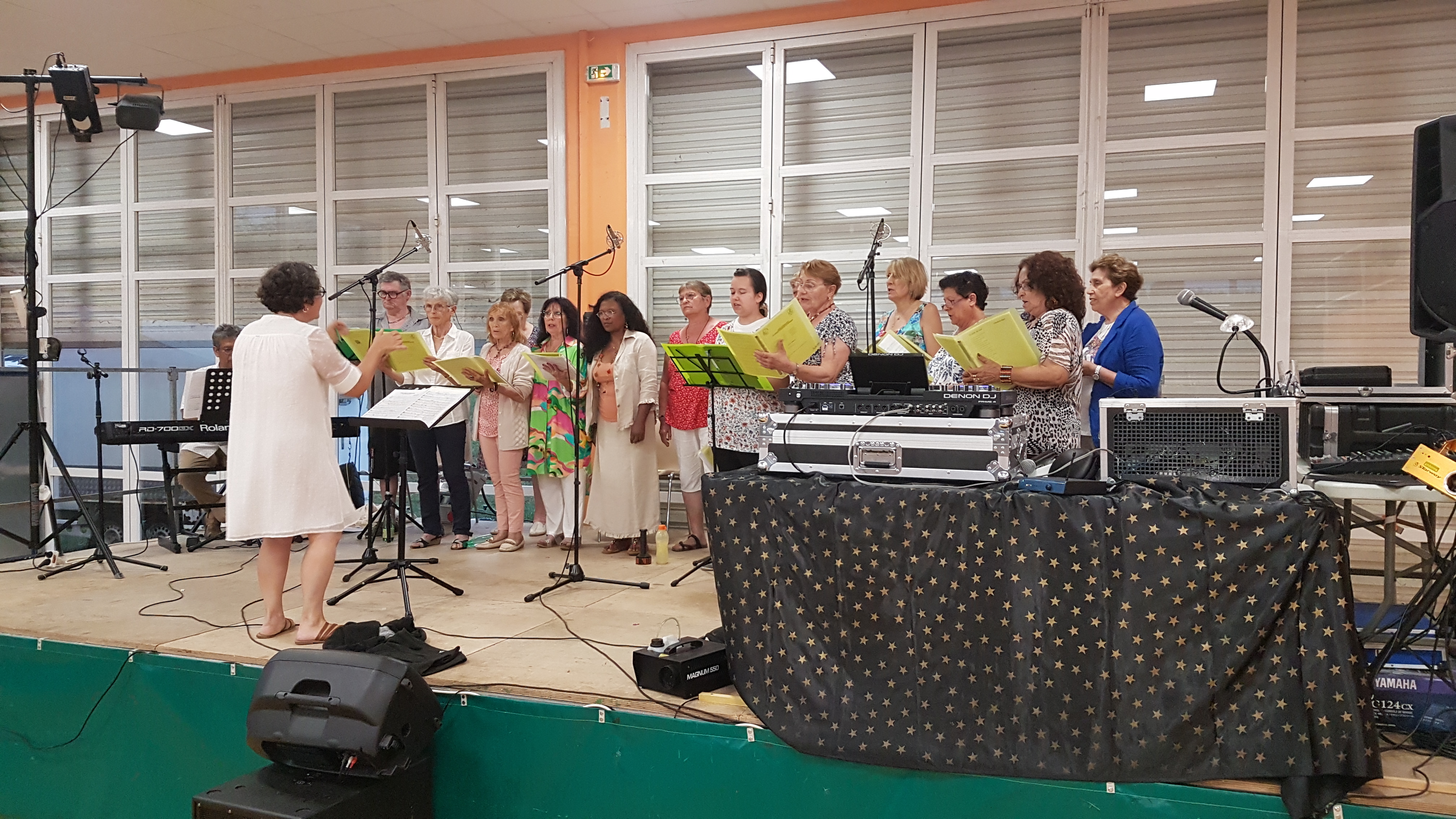 Ensuite pendant le dessert, Liliane et Ranto nous ont proposé un superbe répertoire style jazzy, puis Thibaut à la trompette et Jérémy au chant ont magistralement interprété Armstrong, la chanson de Claude Nougaro. Quel succès. Et pour finir le récital, Francine et Sarah ont chanté un répertoire tout en douceur, des voix magnifiques qui ont régalé le public.