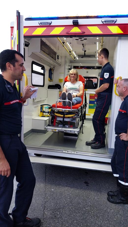 Merci Florence d'avoir endossé le rôle de la victime, et aux pompiers de l'avoir bien sauvée. Elle était entre de très bonnes mains et s'est remise de ses émotions sur le lit de l'ambulance des Pompiers. De nombreux "badauds" ont assisté à cette manoeuvre et peuvent être rassuré, l'efficacité des Pompiers n'est pas une légende. Pour cette manoeuvre, personne n'était au courant,(les riverains de la place, très peu d'élus, et même les Pompiers qui participaient à l'opération) afin qu'elle se déroule dans les conditions du réel.