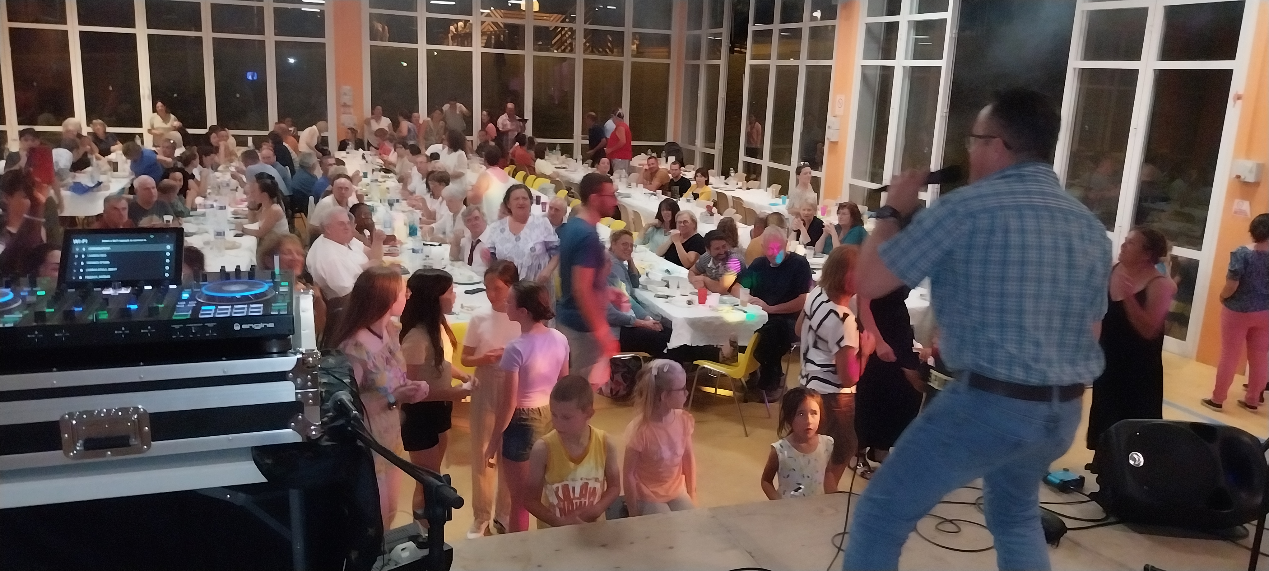 Ensuite pendant le dessert, Joan nous a proposé un superbe répertoire moderne, extrêmement apprécié, super chanteur, merci à lui . Ensuite Régis enflammait la salle sur des chansons de Claude François.La soirée se terminait avec Jérémy au platine, tout le monde sur la piste pour se défouler sur des musiques électro.